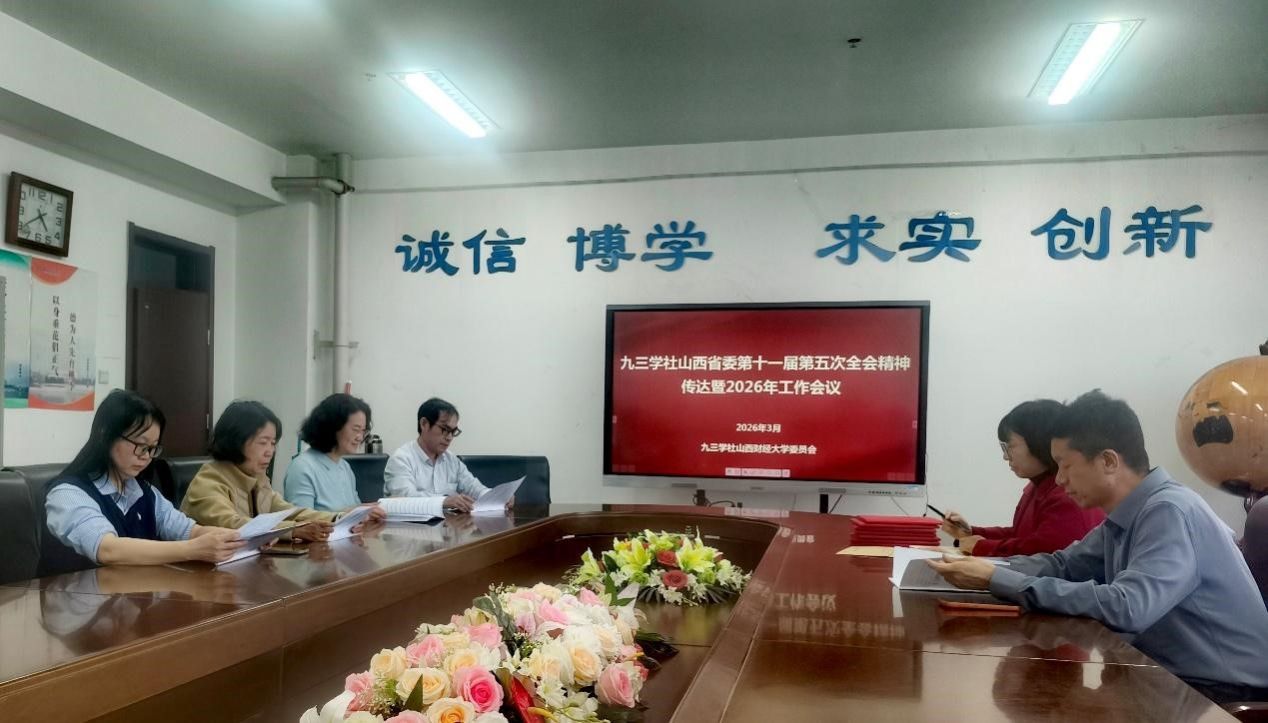 3月24日下午,九三学社山西财经大学委员会召开深入学习贯彻九三学社山西省委第十一届第五次全会精神暨2026年工作会议。主委班凤梅主持会议。
